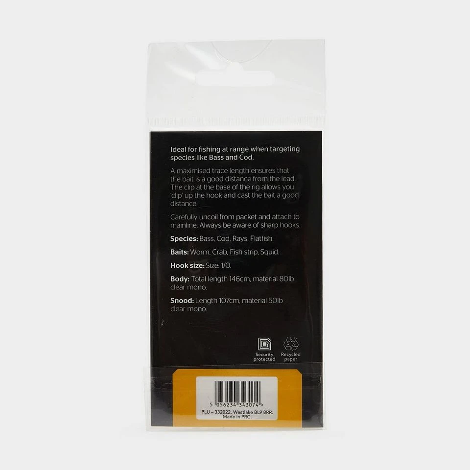 The 1 Hook Clipped Rig is ideal for fishing at range when targeting species like Bass, Cod, Rays and Flatfish.