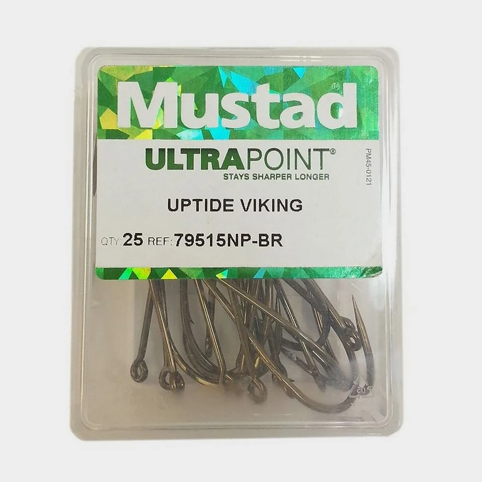 The Uptide Viking Hook from Mustad is a medium wire hook, forged for extra strength. With Mustad’s chemically sharpened ultra-point, it has the reputation of an uptide hook from the boat, but is equally ideal as a heavy duty shore pattern.