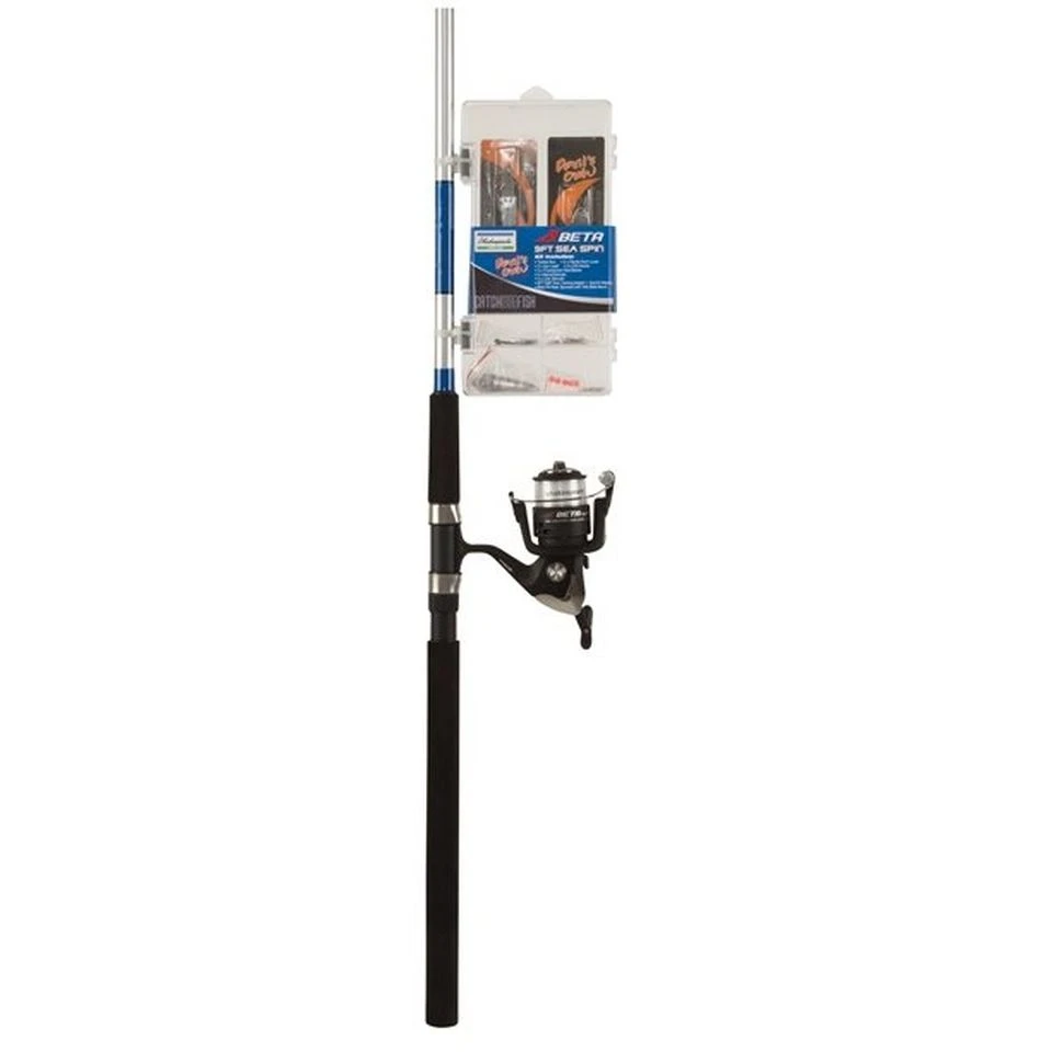 Shakespeare’s Catch More Fish 2 Sea Spin Kit is a great value outfit. It includes a 9ft rod, a Beta FD reel supplied with pre-loaded line and a box full of essential terminal tackle.